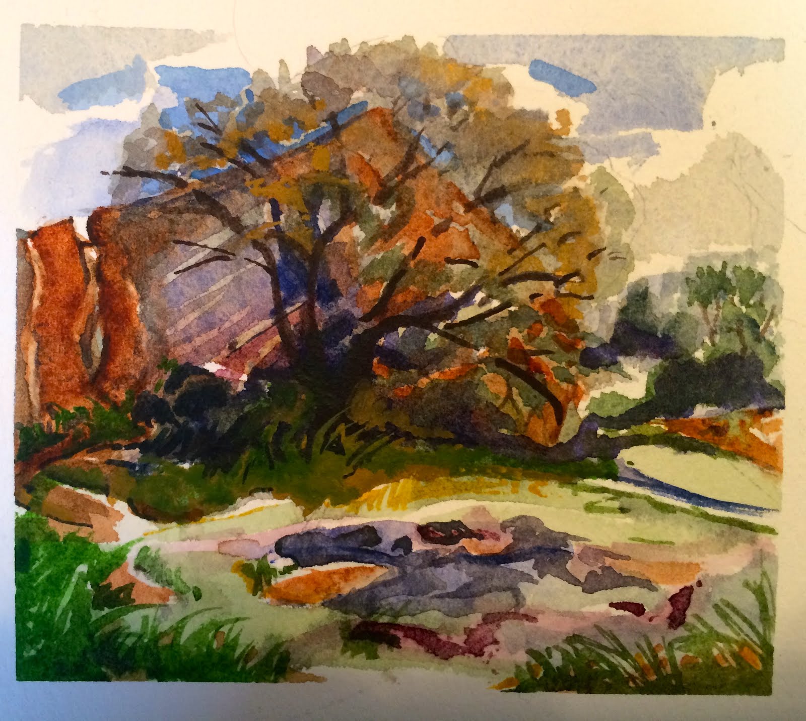 I didn't do many mini memories when I travelled this trip as it was a watercolour workshop but I will add the few pages that I did so you can once again travel along with me. I will also include paintings that I feel were close to being finished. They are in my sketch book so can be considered sketches.